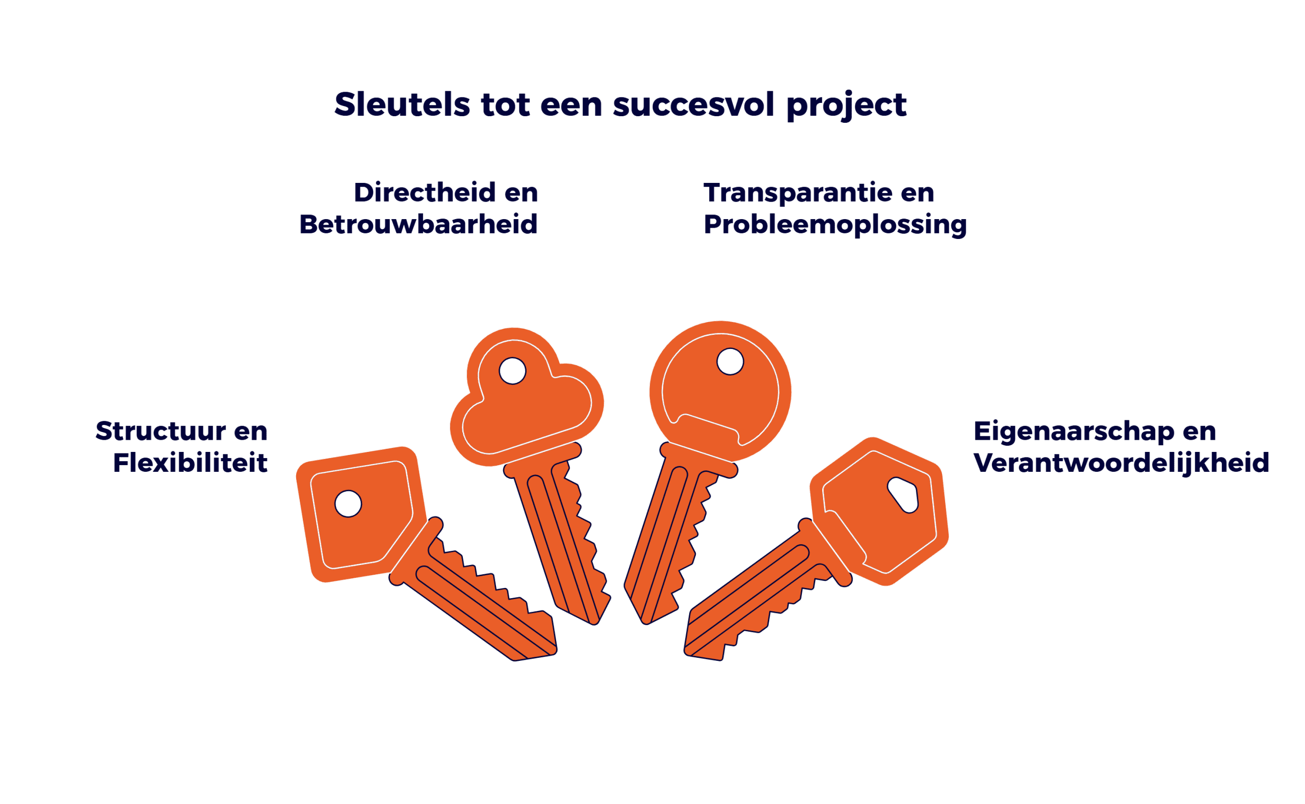 Natuurlijk loopt geen enkel project exact zoals gepland. Maar juist dan komt het erop aan om transparant te blijven. Problemen horen erbij. Wat telt, is dat je ze samen oplost. Dat doe ik door goed te luisteren, open te communiceren en beslissingen onderbouwd te nemen. Uiteindelijk draait alles om eigenaarschap: als iedereen zijn verantwoordelijkheid pakt, kom je samen verder.”