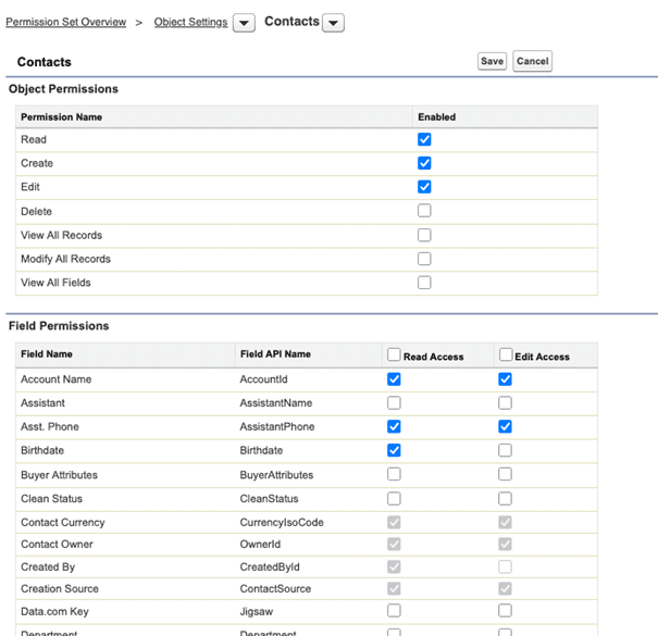 Salesforce biedt de mogelijkheid om zeer gedetailleerd te bepalen wat gebruikers met data mogen doen. Dat doe je aan de hand van CRUD. Dat staat Create, Read, Update en Delete. Deze rechten kun je op profielniveau beheren, maar tegenwoordig kan dat ook via permissie sets. Deze permissie set kun je toewijzen aan gebruikers. Daarmee kan precies worden bepaald tot welke objecten en velden een gebruiker toegang heeft. Wanneer een gebruiker geen toegang heeft tot bepaalde data, kan een aanvaller die informatie ook niet exporteren.