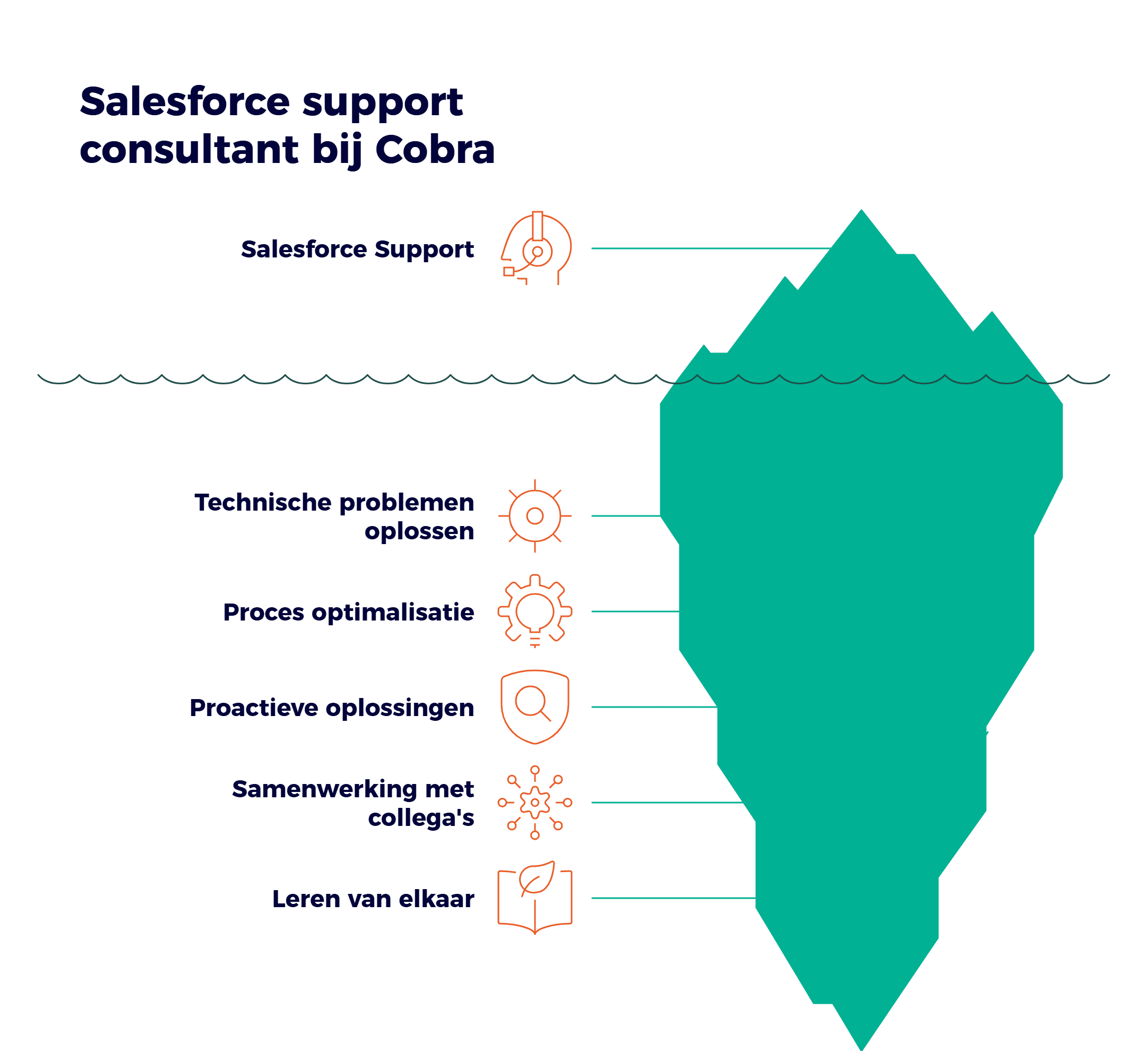 “Inmiddels werk ik bij Cobra als Support Consultant. Dat betekent dat ik klanten help ná de implementatie van Salesforce. Zodra een project live gaat, begint voor ons het onderhoud en de ondersteuning. We zorgen dat alles goed blijft werken, beantwoorden vragen en denken mee over verbeteringen.